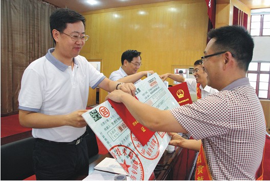 相關領導為獲得我縣科學技術獎的企業頒發了證書。集團喜獲沂水縣科學技術特別貢獻一等獎,侯市長為我們頒發了相關證書。